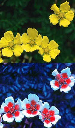 Flowers of the silverweed plant in ultraviolet light